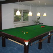 Dieser 12ft. Snookertisch von Konway steht im Süden Baden-Württembergs und befand sich seit 2005 in privatem Besitz. In dieser Zeit wurde er nur einmal mit neuem Tuch bezogen, was bedeutet, dass er wenig gespielt wurde und die Bandenhölzer, die am schnellsten Verschleiß aufweisen, in sehr gutem Zustand sind und lange nicht gewechselt werden müssen.