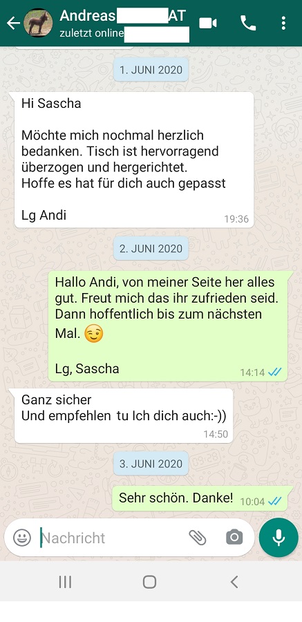 Sollte mich jemand fragen, wie man an so einen schönen Tisch kommt, werde ich Sie weiterempfehlen.