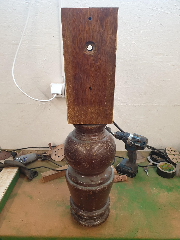 abgeschliffen, mit Wunschfarbe gebeizt und lackiert. Steht da wie neu.