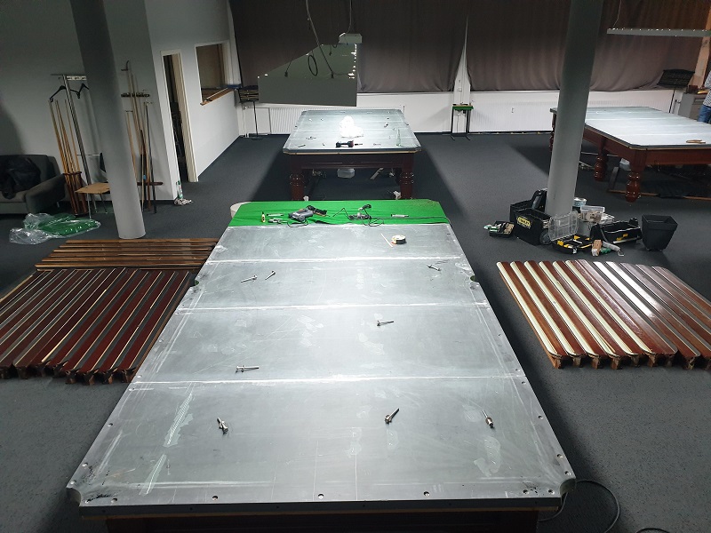 Neue Gummis und Tücher für zwei 12ft Snookertische