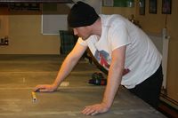 Er hat die Banden meines Snookertischs auf einheitliche Höhe gebracht, die Holzenden in den Mitteltaschen mit Tuch versehen, die Taschen millimetergenau auf die gleiche Größe ausgerichtet und die Tischfläche wieder horizontal eingestellt, die in den vergangenen zwei Jahren ja etwas schief geworden war.
