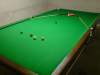Fazit: Ein gerbauchter Tisch (kommt aus England) ist für mich als blutiger Anfänger genau die richtige Wahl gewesen. Der Zustand ist absolut in Ordnung. Die kleinen Bälle und die fiesen Taschen bringen einen zur Verzweiflung sind aber wohl genau das richtige Training. Von meiner Seite aus kann ich Snookerservice.de empfehlen.