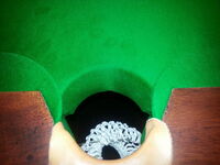 Aber als ich dann bei einem Main Tour-Qualifikations-Turnier (in Pontins/Wales) einen Frame verloren habe, weil die sanft gestoßene Blaue auf einmal vor der Tasche abgebogen und gegen die Kante gegangen ist anstatt ins Loch zu fallen, habe ich mir das Thema nochmal genauer angeschaut und dabei sind mir folgende Vor- und Nachteile der beiden Varianten aufgefallen...